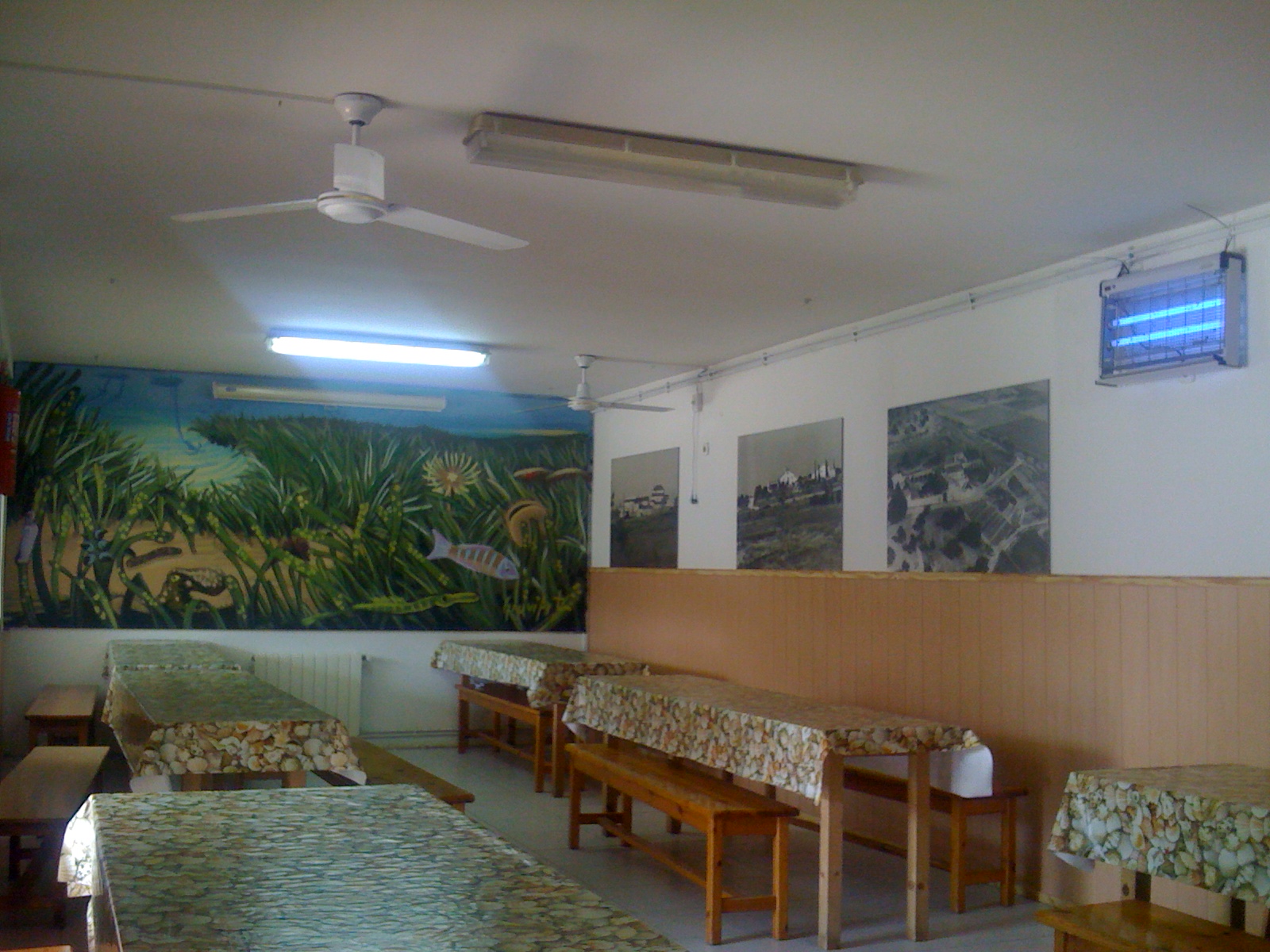 El menjador de la casa de colònies recull 5 fotografies de gran format que il.lustren com era el Mas l’any 1958 i diferents etapes fins a l’actualitat.