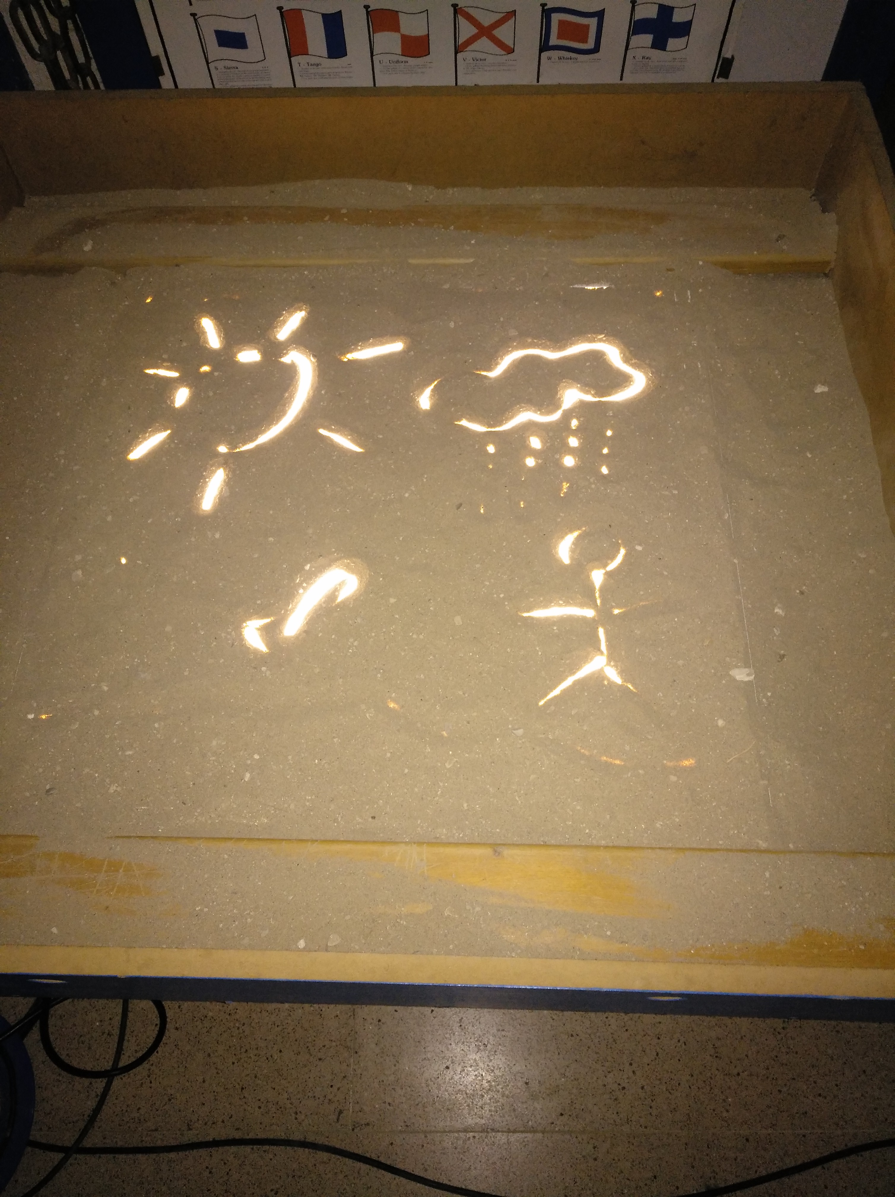 Hem construit una taula de llum i sorra per a explicar contes per als més petits…estones de pluja o mentre esperem que comenci alguna activitat…