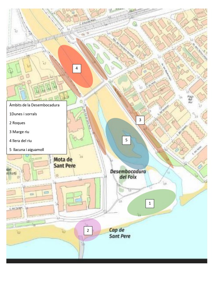 Aquesta pàgina us permetrà descobrir la vegetació que es desenvolupa a la desembocadura del riu Foix a Cubelles. Hem dividit l’espai de la desembocadura en 7 àmbits, on podreu trobar les principals plantes que de cada zona. Feu click sobre cadascun dels àmbits i descobrireu les principals plantes de la zona. Cada planta tindrà associada una fitxa descriptiva publicada a l’herbari virtual de la mediterrània Occidental.